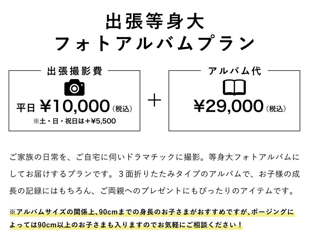 等身大アルバムは、ただプレゼントするためのものでなく、お客様自身も”撮影してもらう”という体験をすることができます。なかなか子どもと一緒に写っている写真がない!、家族全員が写っている写真がない!という方はこの機会にぜひ!